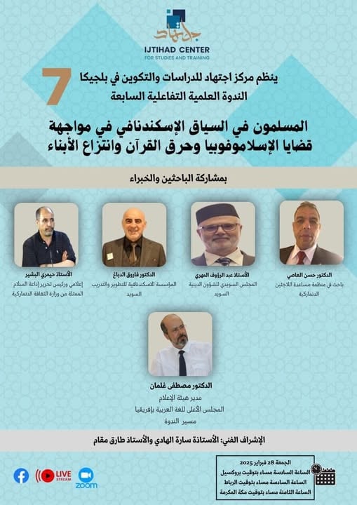 Ijtihad Center for Studies and Training in Belgium organized the seventh interactive scientific symposium on the topic: ✨️️"Muslims in the Scandinavian Context in the Face of Issues of Islamophobia, Burning the Qur’an, and Taking Away Children"
